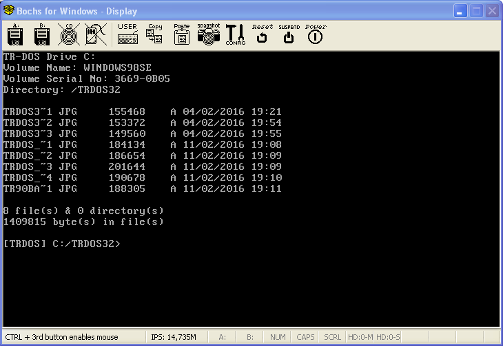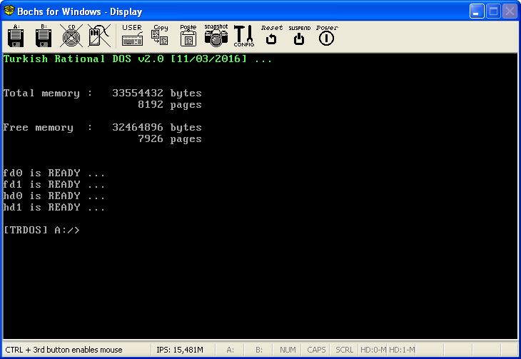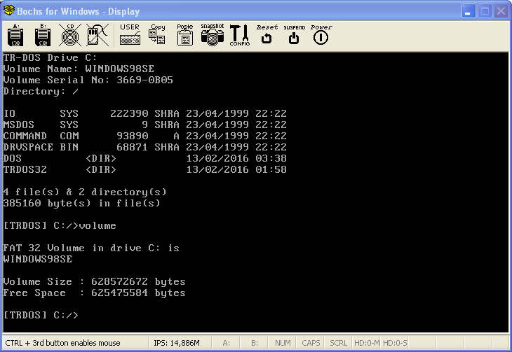 This is an early development time demo. TRDOS 386 kernel is based on 'Retro