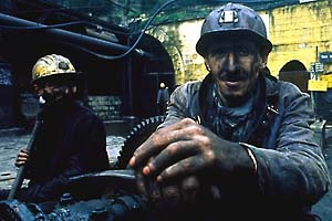 The deepest mine in Zonguldak is Kozlu where miners work at a depth of 560m. Here, the ventilation not only enables people to breathe but serves an invaluable safety role as well. When coal is mined, each blow releases a colorless, odorless, non-poisonous gas - known as fire damp - which, when mixed with air in appropriate amounts, can ignite with slightest friction. The danger is so pernicious that work stops if fire damp is detected at one percent, and at 1.5 percent the area is evacuated. The giant ventilators that prevent you from hearing the sound of your own voice help to sweep away the danger of fire damp. To reach the site of the '92 tragedy, we enter a gallery where water covers our ankles. Kemal explains that flooding rather than fire damp poses the greatest problem in mining, and drainage systems have to be constructed. After walking a few kilometers, damage caused by the explosion becomes evident, exacerbated by subsequent flooding. | ![]() Miners' clothes become soaked from the water sprayed along the face of the coal to damp down dust or from the compressed air diggers which constantly jet water to cool the blades. In the changing rooms of Gelik mines, these wet clothes are dried in baskets drawn up to the ceiling on a pulley.